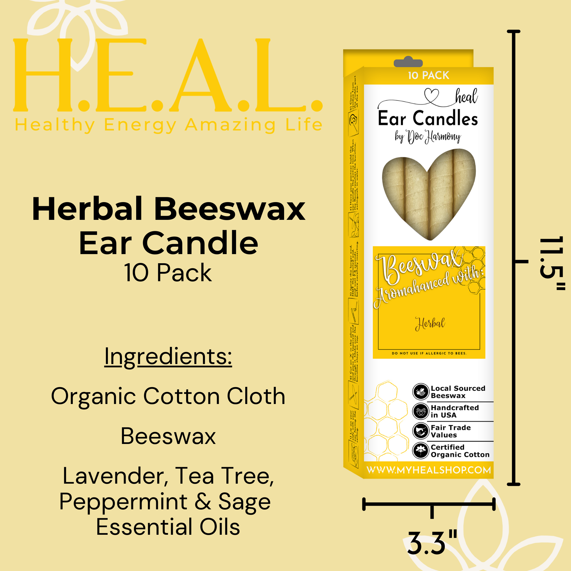 Harmony’s Famous Herbal Beeswax Handcrafted, Organic Ear Candles are 10″ long and approximately 1/2″ in diameter. Ingredients include certified ORGANIC cotton cloth and locally acquired beeswax. Aromahanced with lavender, tea tree, peppermint & sage essential oils.