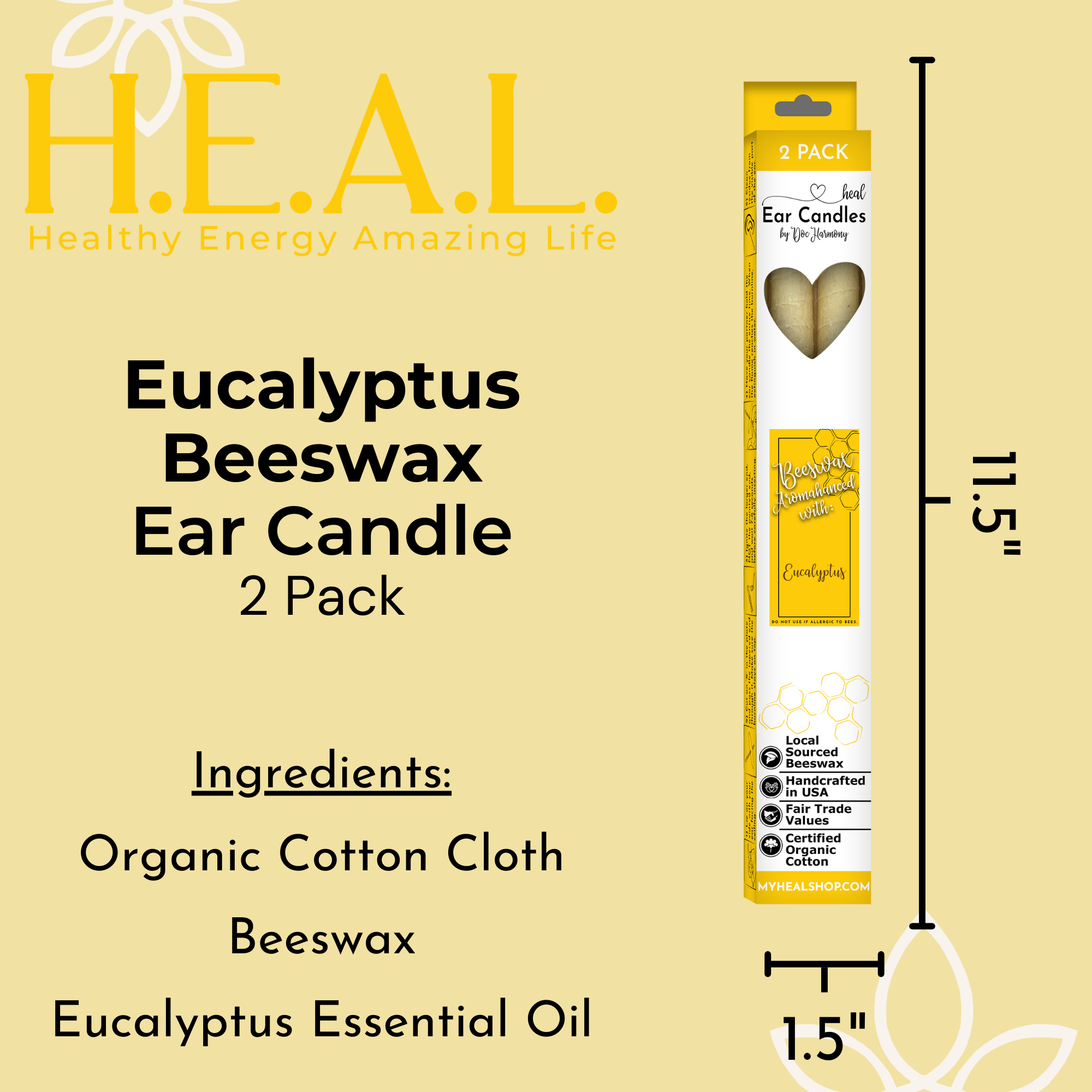 Harmony’s Famous Eucalyptus Beeswax Handcrafted, Organic Ear Candles are 10″ long and approximately 1/2″ in diameter. Ingredients include certified ORGANIC cotton cloth and locally acquired beeswax. Aromahanced with eucalyptus essential oil.