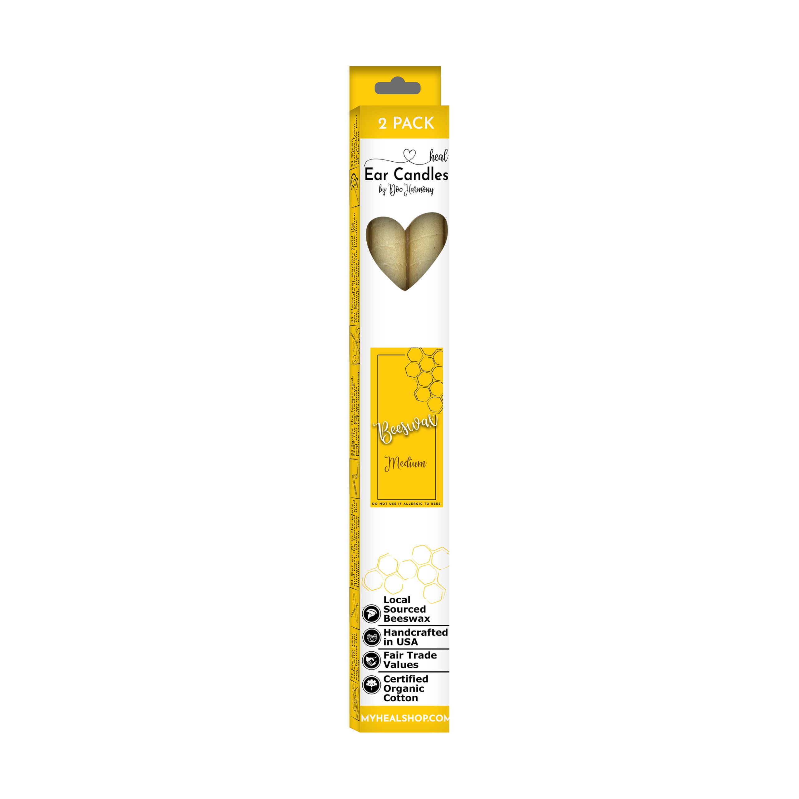 Harmony’s Famous Medium Beeswax Handcrafted, Organic Ear Candles are 10″ long and approximately 5/8″ in diameter. They are made with certified ORGANIC cotton cloth and locally acquired beeswax.