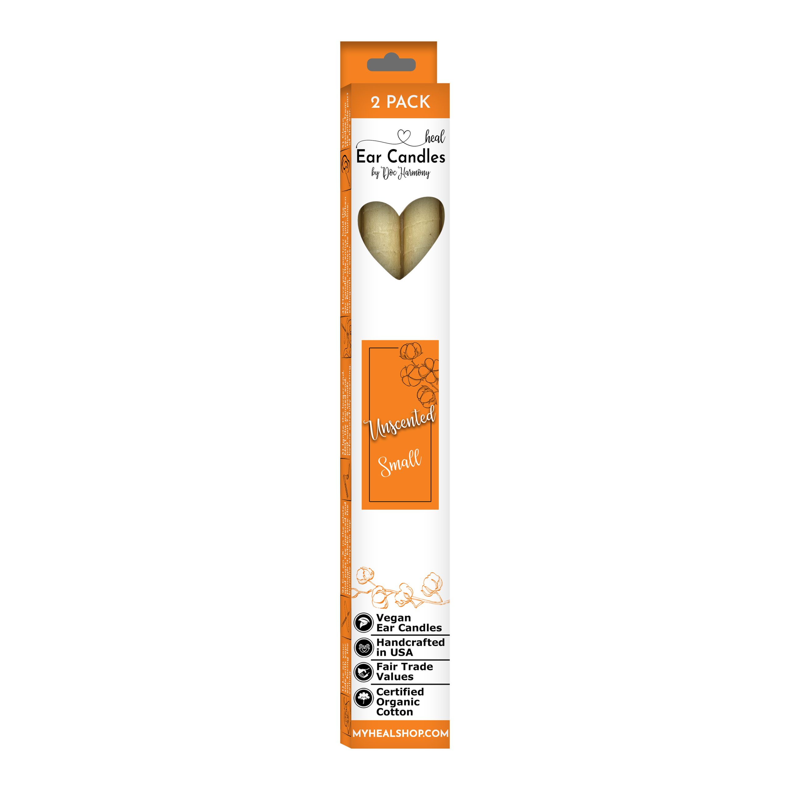 Harmony’s Famous Small Handcrafted, Organic Ear Candles are 10″ long and approximately 1/2″ in diameter. They are made with certified ORGANIC cotton cloth and food grade wax.