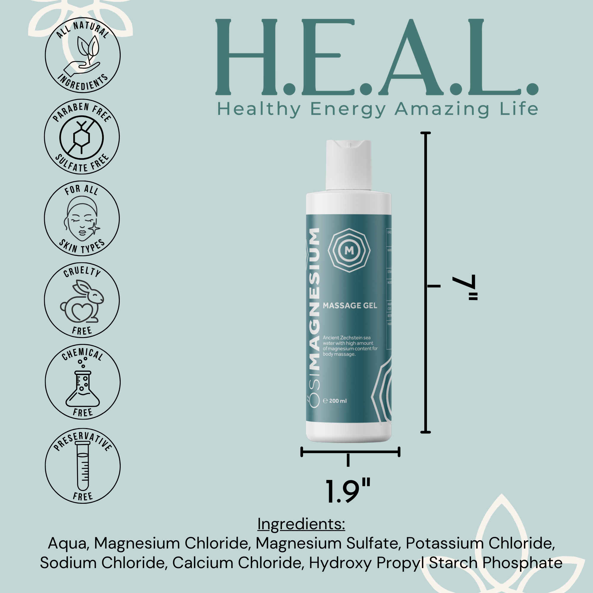 SIMAGNESIUM Gel is a unique formula made of 250 million-year-old ?SIMAGNESIUM Oil, which delivers a large dosage of magnesium into the body by penetrating the skin. Recommended for body massage.