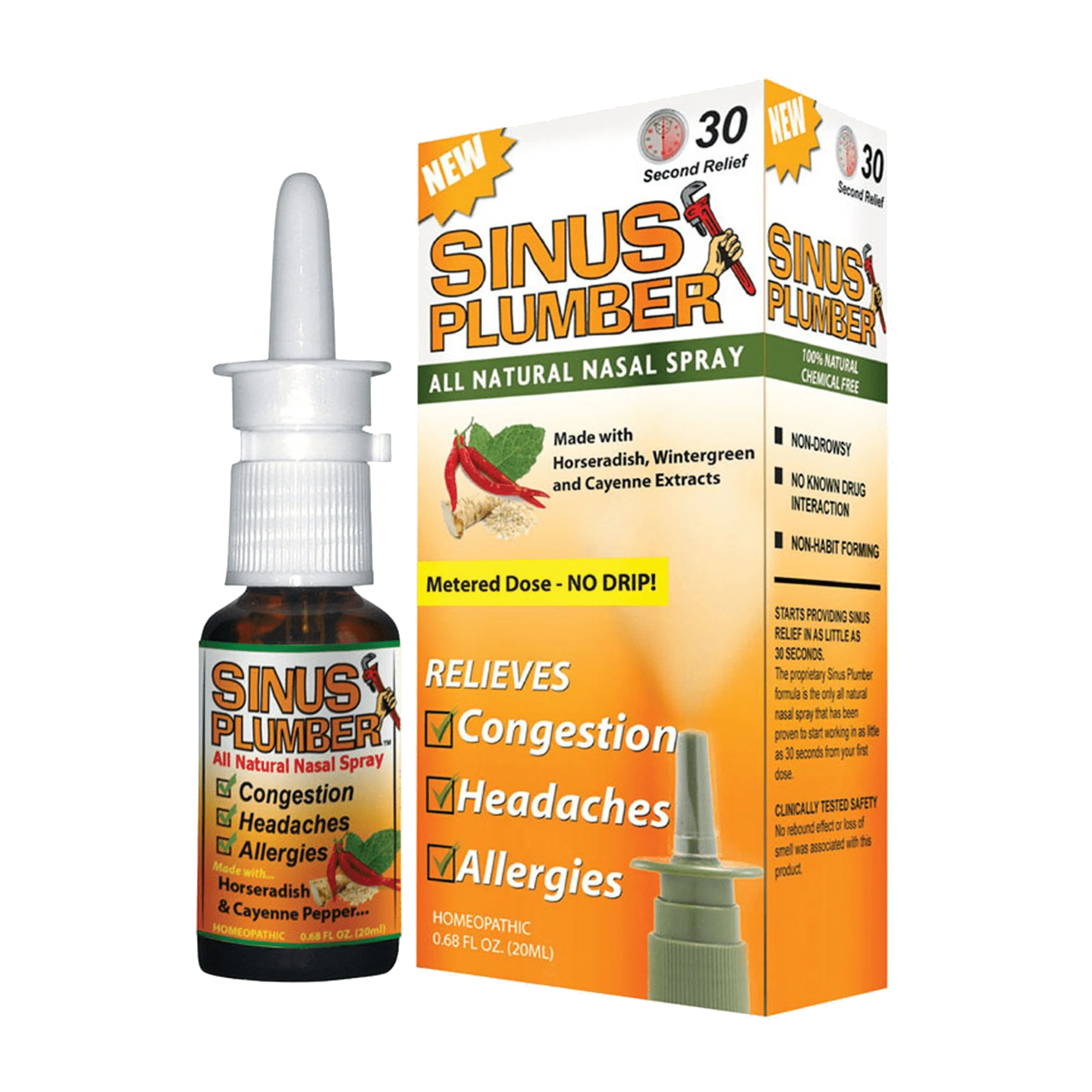 Sinus Plumber is an all-natural Nasal Spray. This spicy natural hot pepper horseradish nasal spray designed to inspire sinus, allergy and headache relief. It starts reducing inflammation and congestion within 30 seconds. Not tested on animals.